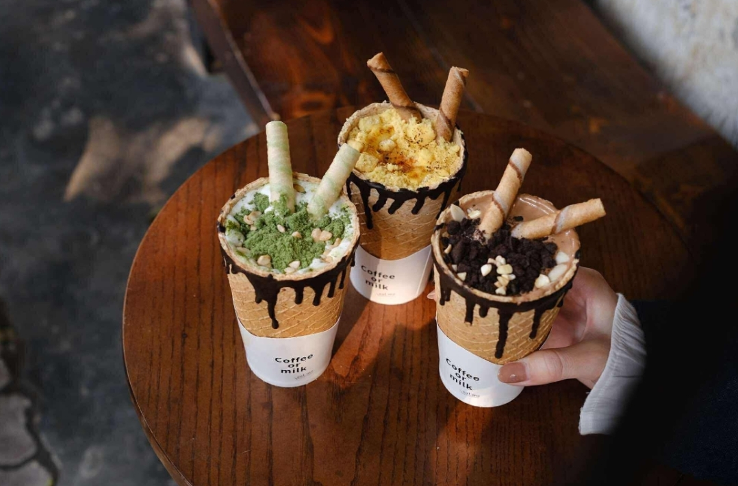 베트남에서는 최근 아이스크림 콘(와플 콘) 컵에 커피를 담아 마시는 트렌드가 하노이, 호찌민, 하띤 등 여러 지역에서 확산되며 젊은 층의 관심을 끌고 있다. 하노이 보반둥 거리의 한 카페에서는 주말마다 수백 명의 손님이 줄을 서서 주문을 기다린다. 이곳에서는 비스킷 커피, 말차 아이스크림, 코코아 등 세 가지 맛이 주를 이룬다.