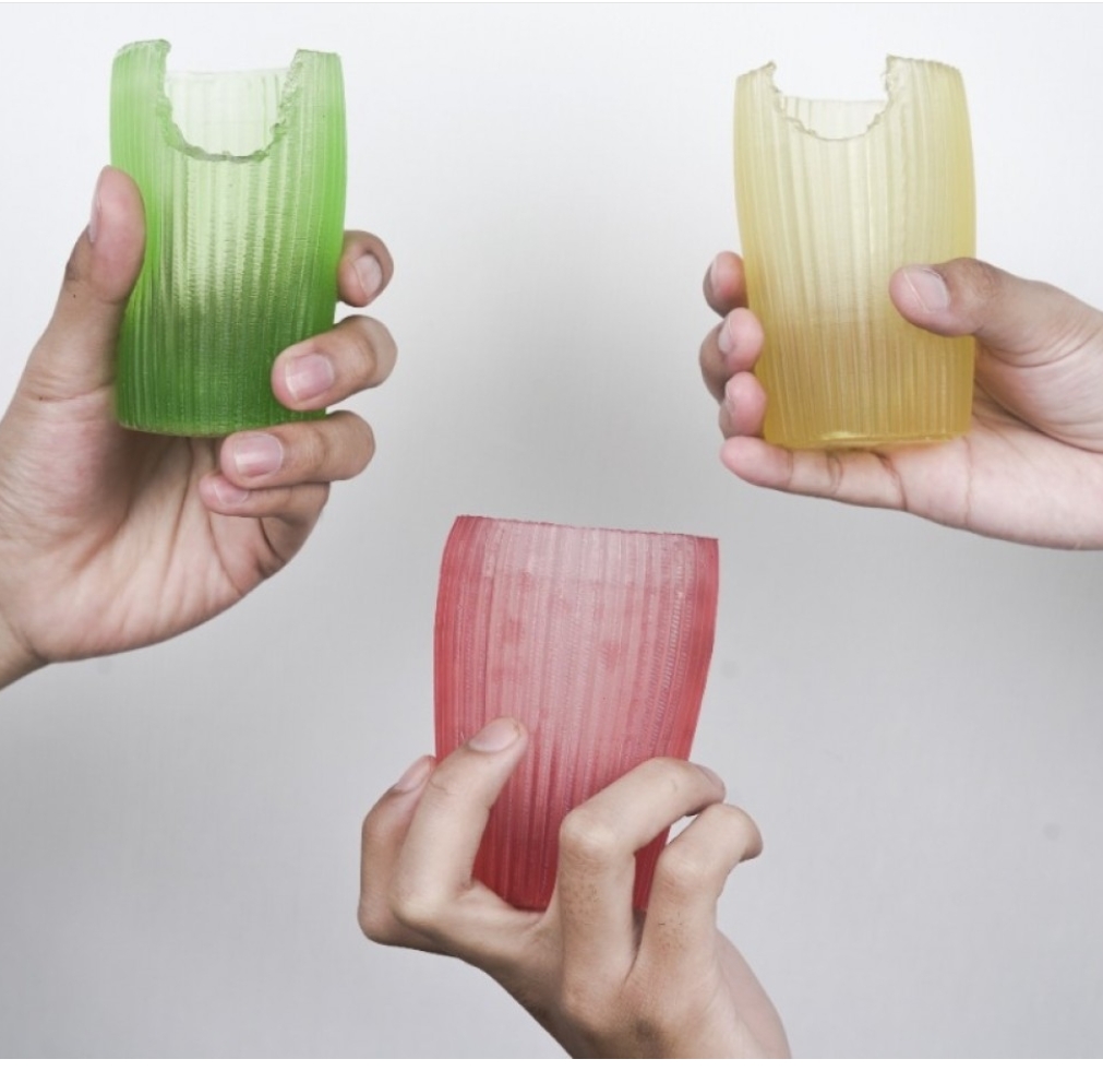 해당 제품은 인도네시아 스타트업 ‘에보웨어(Evoware)’가 개발한 것으로, 플라스틱 포장 폐기물 감축을 위해 비전통적인 접근을 택했다. 해조류 젤리로 만든 식용 컵을 시작으로, 케이크 포장지나 설탕·커피·조미료 등을 담는 소형 포장재(sachet)까지 개발했다.