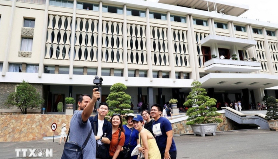 베트남 호찌민시에 위치한 역사적 명소인 통일궁을 관람하는 중국 관광객. (사진: TTXVN)