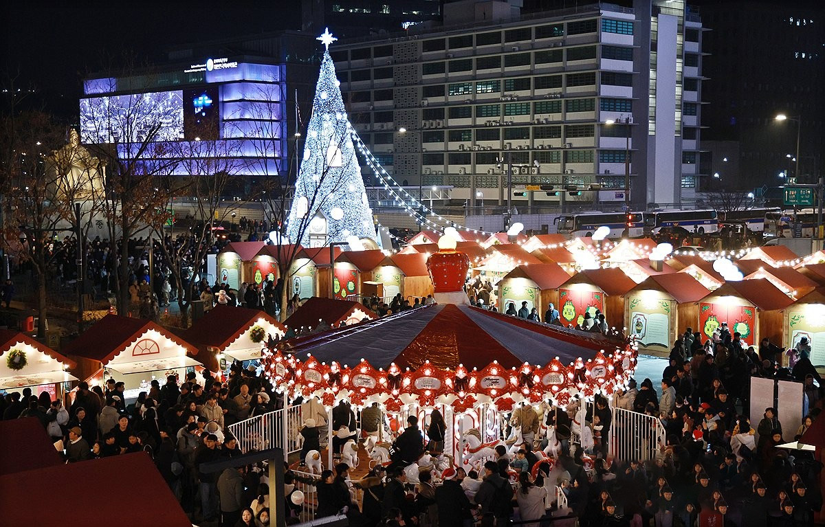 Người dân đi hội chợ Giáng sinh tại Quảng trường Gwanghwamun, Seoul, Hàn Quốc, ngày 14-12-2025 - Ảnh: en.yna.co.kr