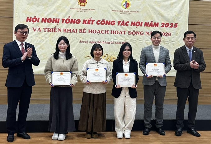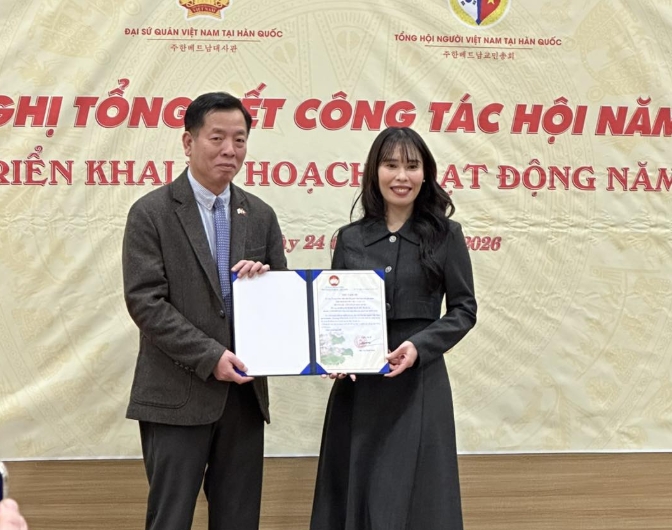 Ngày 24/01/2026, trong khuôn khổ chương trình “Họp mặt – Tổng kết công tác năm 2025 và triển khai kế hoạch năm 2026” được tổ chức trang trọng tại Đại sứ quán Việt Nam tại Seoul, Hội Người Việt Nam tại Jeonnam – Gwangju đã vinh dự được ghi nhận tại nhiều hạng mục khen thưởng quan trọng.
