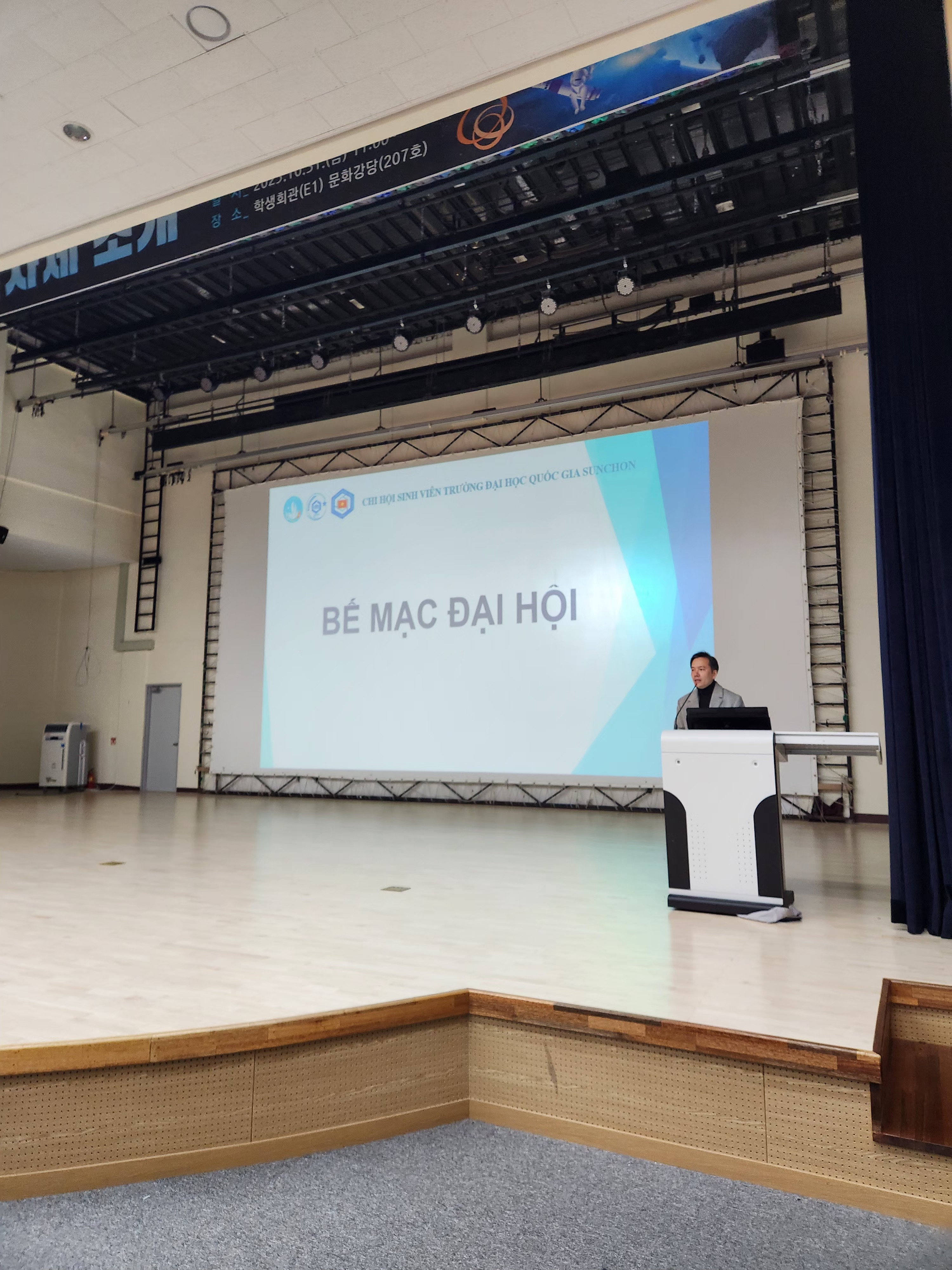 Vừa qua, Chi hội sinh viên Đại học Quốc Gia Suncheon  đã long trọng tổ chức Đại hội Đại biểu Chi hội Sinh viên nhiệm kì II (2025 – 2026) tại hội trường tòa nhà 문화당담. Đây là sự kiện quan trọng của sinh viên toàn trường, nhằm tổng kết và đánh giá hoạt động của nhiệm kỳ cũ, đồng thời bầu ra Ban chấp hành (BCH) mới.