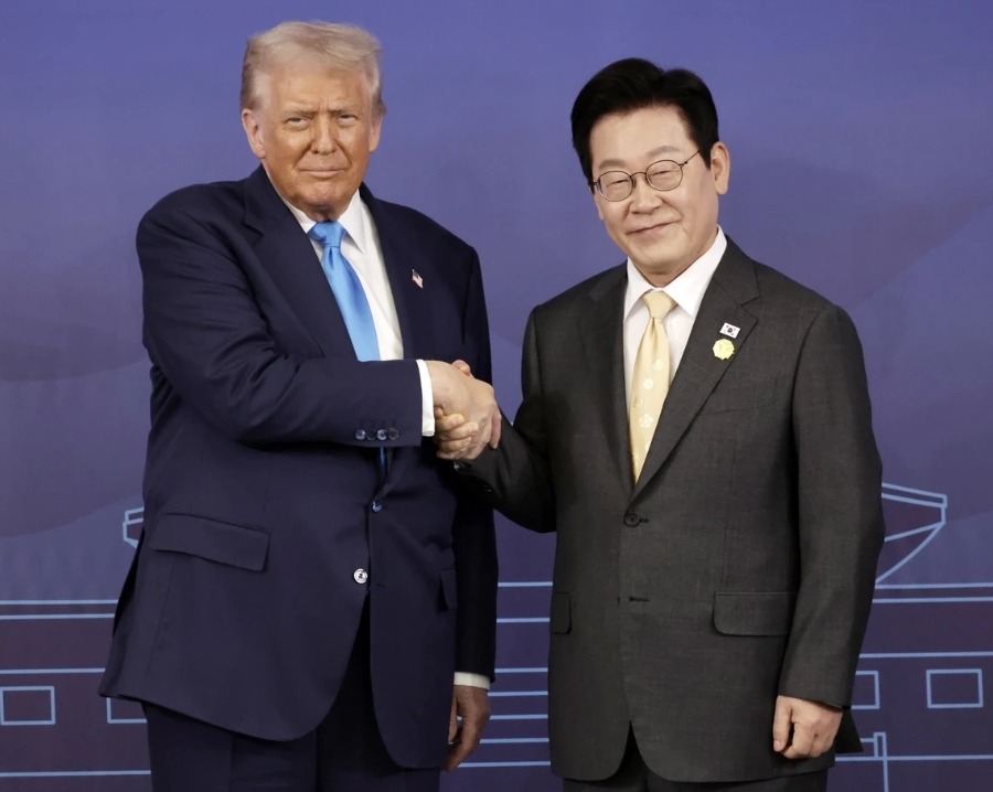 Tổng thống Hàn Quốc Lee Jae Myung và Tổng thống Mỹ Donald Trump gặp nhau tại Hàn Quốc. Ảnh: Yonhap.
