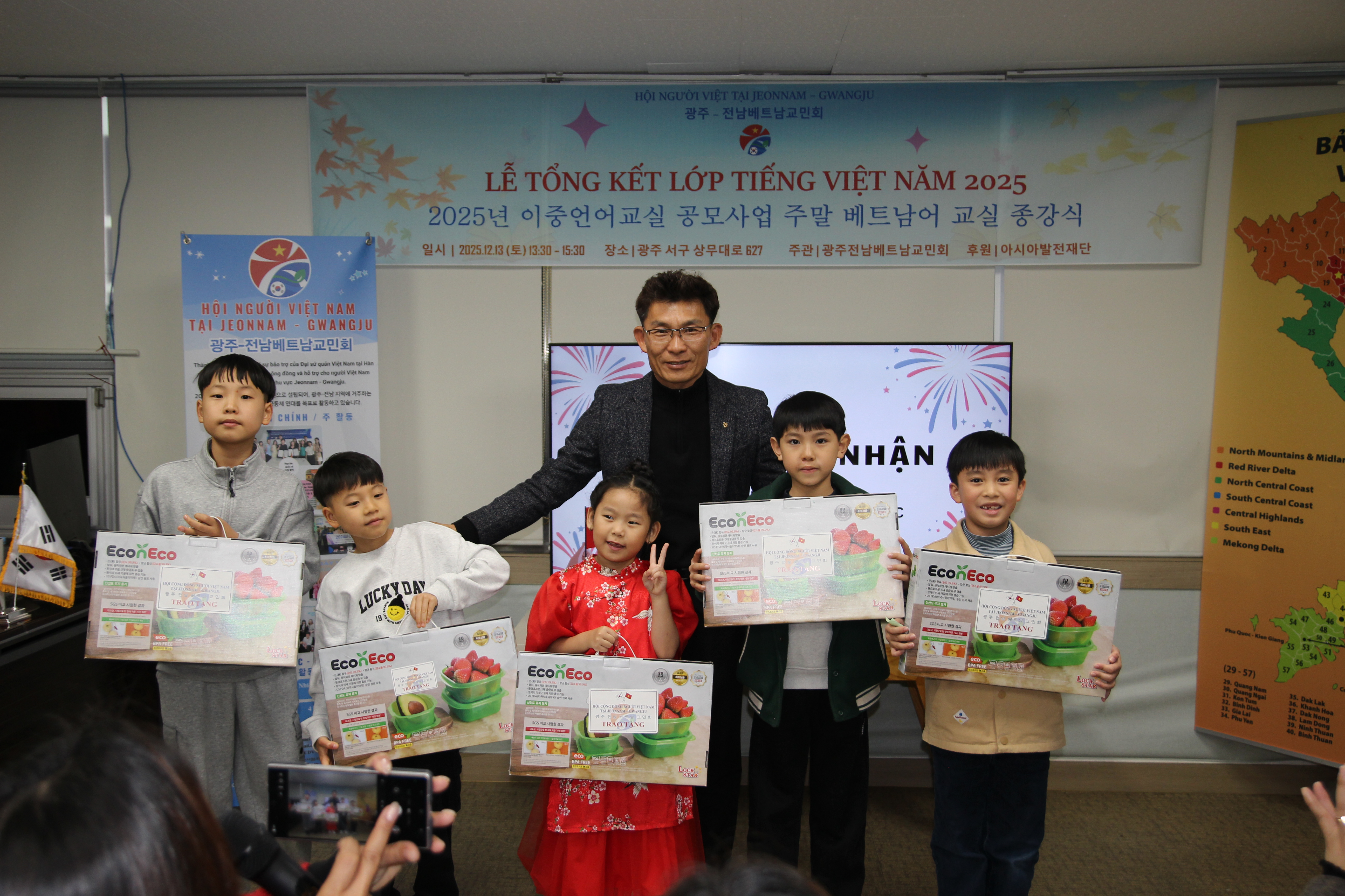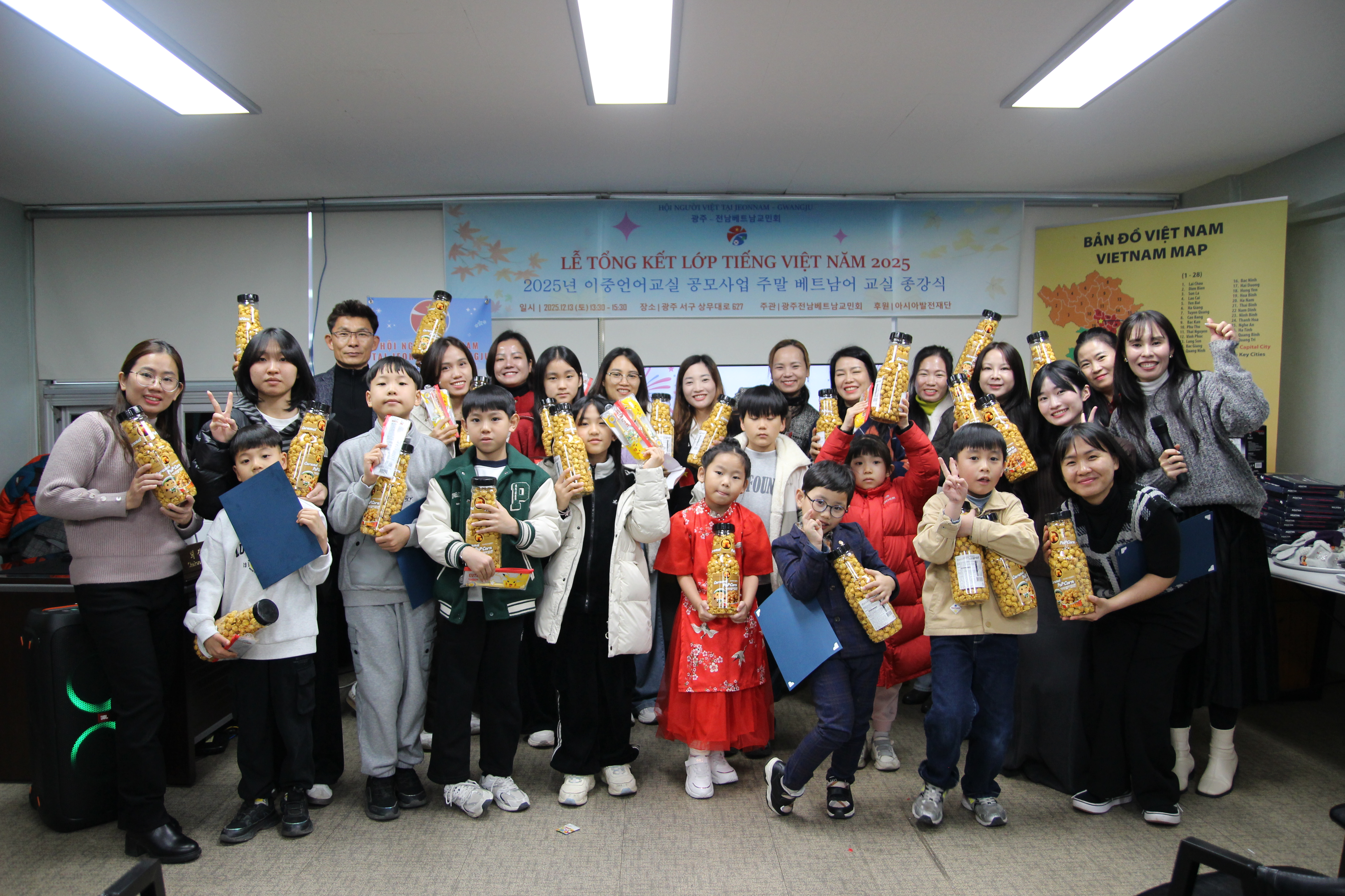 Hội người Việt tại Jeonnam – Gwangju xin trân trọng cảm ơn các giáo viên, phụ huynh và toàn thể các em học sinh đã đồng hành, góp phần tạo nên một buổi lễ tổng kết thành công và ý nghĩa. Hội hy vọng rằng lớp Tiếng Việt sẽ tiếp tục là nơi nuôi dưỡng tình yêu tiếng mẹ đẻ và bản sắc văn hóa Việt trong cộng đồng.
