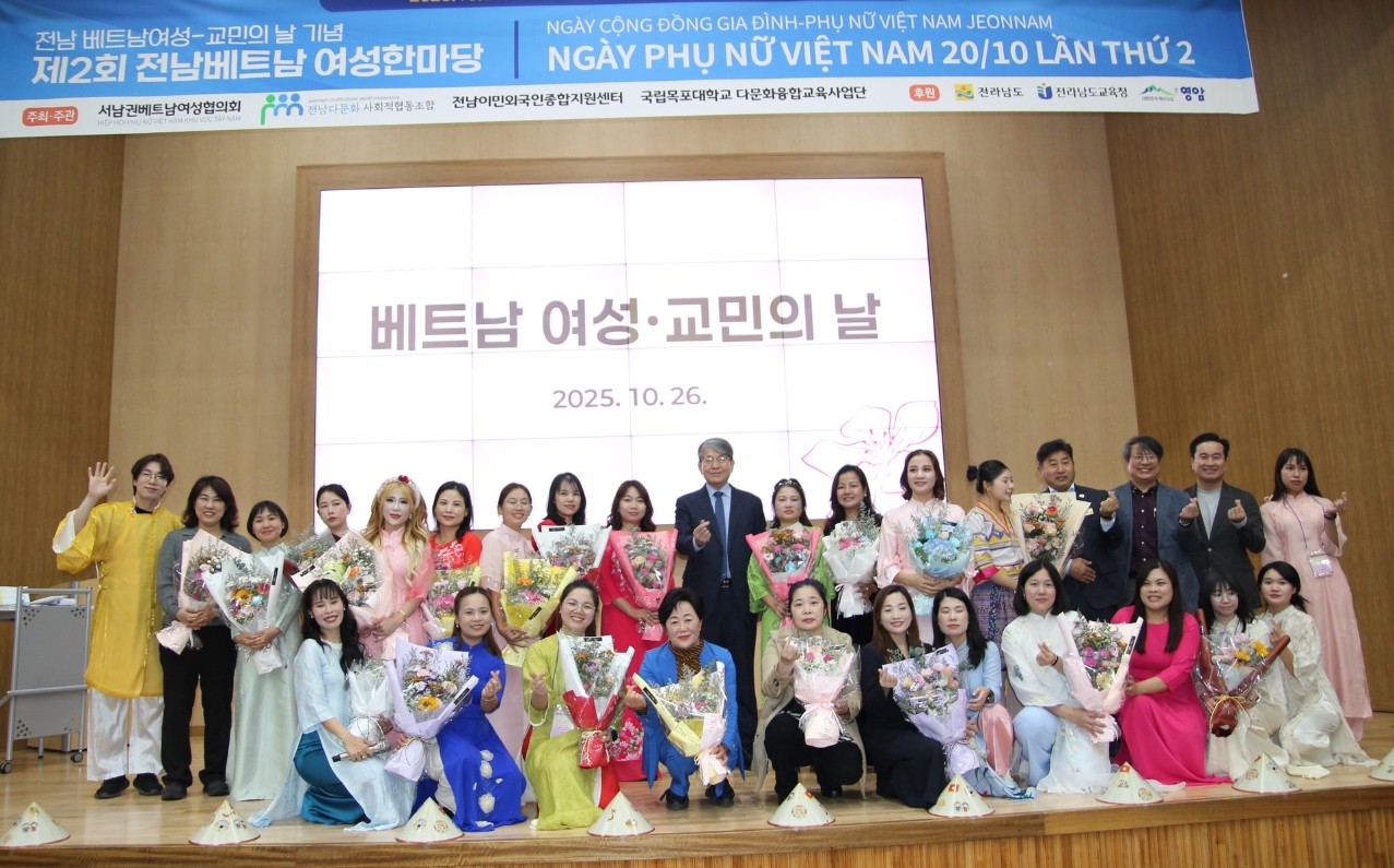 Cuối tuần qua, Hội Người Việt Nam tại Jeonnam đã được vinh dự đồng hành và tài trợ Hội Phụ Nữ Việt Nam khu vực Tây Nam tổ chức Lễ hội “Ngày Cộng đồng Gia đình Phụ nữ Việt Nam Jeonnam 2025”, nhân dịp kỷ niệm 95 năm Ngày Phụ nữ Việt Nam (20/10/1930 – 20/10/2025).